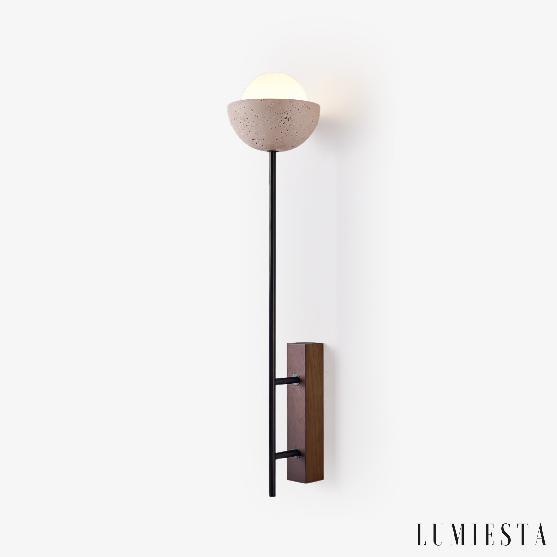 Crestava – Lampa wisząca trawertynowa, żółta z drewnem do jadalni, 23x7x10 cm